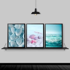 O Kit 3 Quadros Praia Mar Azul E Rosa 33X24Cm é perfeito para dar um toque especial à decoração do seu quarto, sala, cozinha, escritório, área gourmet e muito mais. Chega de paredes vazias! Cada peça tem 33x24cm A4 e conta com uma moldura de madeira branca, que traz um acabamento elegante e charmoso.