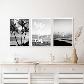 Compre agora o Kit 3 Quadros Praia Preto E Branco Resiliência 24X18Cm e transforme sua casa em um ambiente moderno e sofisticado. Garantia de 3 meses para sua total tranquilidade.