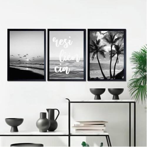 O Kit 3 Quadros Praia Preto E Branco Resiliência 33X24Cm Vidro é perfeito para decorar o seu quarto, sala, cozinha, escritório, área gourmet e muito mais. Com medidas de 33x24cm A4 , cada peça é feita em papel fotográfico brilhante de altíssima resolução, garantindo uma imagem nítida e de qualidade. Os quadros possuem moldura em madeira maciça na cor preta, conferindo um visual elegante e moderno. Além disso, eles já vêm acompanhados de vidro para proteção da imagem, evitando danos causados pelo tempo. Com o Kit 3 Quadros Praia Preto E Branco Resiliência 33X24Cm Vidro, você terá a de uma decoração sofisticada e personalizada. A fixação é simples, basta utilizar um martelo e um prego, pois os quadros já vêm com penduradores. A limpeza dos quadros é fácil e prática, podendo ser feita com um pano seco ou um espanador, assim como qualquer outro móvel da sua casa. Adquira agora mesmo o Kit 3 Quadros Praia Preto E Branco Resiliência 33X24Cm Vidro e deixe o ambiente ainda mais bonito e aconchegante. Garanta já o seu! Marca: Não Informado