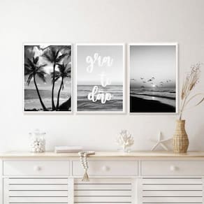 Kit 3 quadros praia preto e branco gratidão 24x18cm Moldura: madeira branca Informações do produto tire todas as suas dúvidas no descritivo abaixo: decoração para quarto, sala, cozinha, escritório, área gourmet e muito mais. Chega de paredes vazias medidas - cada peça tem 24x18cm a5 . Material do papel - papel fotográfico brilhante de altíssima resolução acabamento - todos os quadros são acompanhados de uma película de acetato para proteção da imagem. - os quadros são embalados de forma segura com plástico bolha com camada dupla de acordo com o tamanho dos quadros. Garantia - garantia de 3 meses. Meu quadro chegou. Como posso fixá-lo Você precisa apenas de um martelo e um prego, pois os quadros já vão acompanhados de penduradores. Esta é a forma mais indicada. Caso prefira, você pode utilizar uma fita dupla face neste caso, sugerimos de alta qualidade para evitar que descole e seu quadro caia . Como posso limpar meu quadro A limpeza é feita como um móvel comum da sua casa. Apenas um pano seco ou espanador são suficientes para tal Ean: 7892027819214