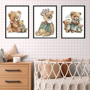 Kit 3 quadros quarto bebê - ursinha vintage 24x18cm Moldura: madeira branca Informações do produto tire todas as suas dúvidas no descritivo abaixo: decoração para quarto, sala, cozinha, escritório, área gourmet e muito mais. Chega de paredes vazias medidas - cada peça tem 24x18cm a5 . Material do papel - papel fotográfico brilhante de altíssima resolução acabamento - todos os quadros são acompanhados de uma película de acetato para proteção da imagem. - os quadros são embalados de forma segura com plástico bolha com camada dupla de acordo com o tamanho dos quadros. - de 3 meses. Meu quadro chegou. Como posso fixá-lo Você precisa apenas de um martelo e um prego, pois os quadros já vão acompanhados de penduradores. Esta é a forma mais indicada. Caso prefira, você pode utilizar uma fita dupla face neste caso, sugerimos de alta qualidade para evitar que descole e seu quadro caia . Como posso limpar meu quadro A limpeza é feita como um móvel comum da sua casa. Apenas um pano seco ou espanador são suficientes para tal Marca: Não Informado