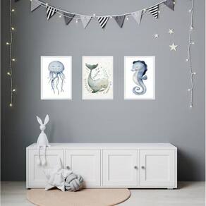 Kit 3 quadros quarto infantil tema fundo do mar 45x34cm Cor: moldura preta Informações do produto tire todas as suas dúvidas no descritivo abaixo: decoração para quarto, sala, cozinha, escritório, área gourmet e muito mais. Chega de paredes vazias. Medidas - cada peça tem 45x34cm a3 . Material do papel - papel fotográfico brilhante de altíssima resolução acabamento - todos os quadros são acompanhados de uma película de acetato para proteção da imagem. - os quadros são embalados de forma segura com plástico bolha com camada dupla de acordo com o tamanho dos quadros. - de 3 meses. Meu quadro chegou. Como posso fixá-lo Você precisa apenas de um martelo e um prego, pois os quadros já vão acompanhados de penduradores. Esta é a forma mais indicada. Caso prefira, você pode utilizar uma fita dupla face neste caso, sugerimos de alta qualidade para evitar que descole e seu quadro caia . Como posso limpar meu quadro A limpeza é feita como um móvel comum da sua casa. Apenas um pano seco ou espanador são suficientes para tal Marca: Não Informado