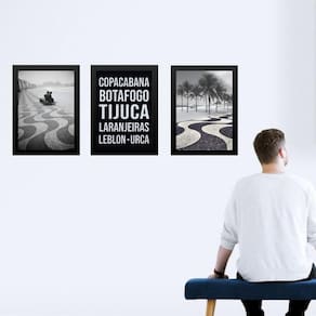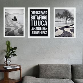 Kit 3 quadros rio de janeiro - bairros zona sul 45x34cm - com vidro Cor: moldura branca Informações do produto tire todas as suas dúvidas no descritivo abaixo: decoração para quarto, sala, cozinha, escritório, área gourmet e muito mais. Chega de paredes vazias medidas - cada peça tem 45x34cm a3 . Material do papel - papel fotográfico brilhante de altíssima resolução acabamento - todos os quadros são acompanhados de vidro para proteção da imagem. - moldura em madeira maciça na cor preta ou branca conforme produto escolhido e pendurador . - os quadros são embalados de forma segura com plástico bolha com camada dupla de acordo com o tamanho dos quadros. - de 3 meses. Meu quadro chegou. Como posso fixá-lo Você precisa apenas de um martelo e um prego, pois os quadros já vão acompanhados de penduradores. Esta é a forma mais indicada. Como posso limpar meu quadro A limpeza é feita como um móvel comum da sua casa. Apenas um pano seco ou espanador são suficientes para tal