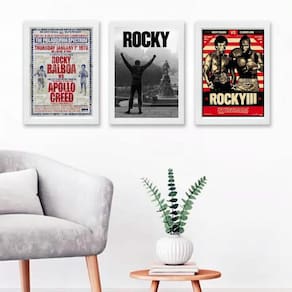 Tenha em sua casa a decoração perfeita com o Kit 3 Quadros Decorativos Rocky Balboa Posters 45X34Cm. Com moldura de madeira branca, esses quadros são ideais para compor diversos ambientes, como quarto, sala, cozinha, escritório, área gourmet e muito mais.