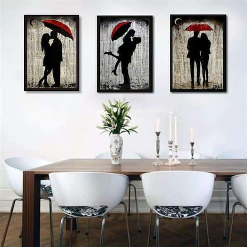 Kit 3 quadros românticos casal sombrinha 45x34cm - com vidro Moldura: madeira branca Informações do produto tire todas as suas dúvidas no descritivo abaixo: decoração para quarto, sala, cozinha, escritório, área gourmet e muito mais. Chega de paredes vazias medidas - cada peça tem 45x34cm a3 . Material do papel - papel fotográfico brilhante de altíssima resolução acabamento - todos os quadros são acompanhados de vidro para proteção da imagem. - moldura em madeira maciça na cor preta ou branca conforme produto escolhido e pendurador . - os quadros são embalados de forma segura com plástico bolha com camada dupla de acordo com o tamanho dos quadros. Garantia - garantia de 3 meses. Meu quadro chegou. Como posso fixá-lo Você precisa apenas de um martelo e um prego, pois os quadros já vão acompanhados de penduradores. Esta é a forma mais indicada. Como posso limpar meu quadro A limpeza é feita como um móvel comum da sua casa. Apenas um pano seco ou espanador são suficientes para tal