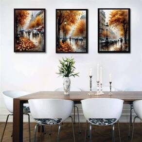 Kit 3 quadros românticos cidade europa 33x24cm