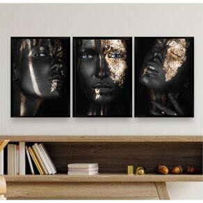 Kit 3 Quadros Sala Mulher Black Gold 24x18cm + Vidro