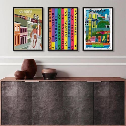 Kit 3 quadros salvador bahia - ícones 45x34cm - com vidro Moldura: madeira branca Informações do produto tire todas as suas dúvidas no descritivo abaixo: decoração para quarto, sala, cozinha, escritório, área gourmet e muito mais. Chega de paredes vazias medidas - cada peça tem 45x34cm a3 . Material do papel - papel fotográfico brilhante de altíssima resolução acabamento - todos os quadros são acompanhados de vidro para proteção da imagem. - moldura em madeira maciça na cor preta ou branca conforme produto escolhido e pendurador . - os quadros são embalados de forma segura com plástico bolha com camada dupla de acordo com o tamanho dos quadros. Garantia - garantia de 3 meses. Meu quadro chegou. Como posso fixá-lo Você precisa apenas de um martelo e um prego, pois os quadros já vão acompanhados de penduradores. Esta é a forma mais indicada. Como posso limpar meu quadro A limpeza é feita como um móvel comum da sua casa. Apenas um pano seco ou espanador são suficientes para tal