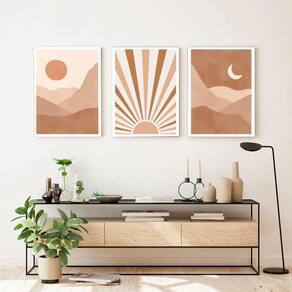 Kit 3 quadros sol e lua - boho marrom 45x34cm Cor: moldura branca Informações do produto tire todas as suas dúvidas no descritivo abaixo: decoração para quarto, sala, cozinha, escritório, área gourmet e muito mais. Chega de paredes vazias. Medidas - cada peça tem 45x34cm a3 . Material do papel - papel fotográfico brilhante de altíssima resolução acabamento - todos os quadros são acompanhados de uma película de acetato para proteção da imagem. - os quadros são embalados de forma segura com plástico bolha com camada dupla de acordo com o tamanho dos quadros. Garantia - garantia de 3 meses. Meu quadro chegou. Como posso fixá-lo Você precisa apenas de um martelo e um prego, pois os quadros já vão acompanhados de penduradores. Esta é a forma mais indicada. Caso prefira, você pode utilizar uma fita dupla face neste caso, sugerimos de alta qualidade para evitar que descole e seu quadro caia . Como posso limpar meu quadro A limpeza é feita como um móvel comum da sua casa. Apenas um pano seco ou espanador são suficientes para tal