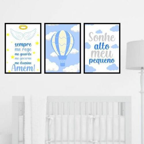Kit 3 quadros sonhe alto - anjo da guarda 60x40cm Moldura: madeira preta Informações do produto tire todas as suas dúvidas no descritivo abaixo: decoração para quarto, sala, cozinha, escritório, área gourmet e muito mais. Chega de paredes vazias medidas - cada peça tem 60x42cm a2 . Material do papel - papel fotográfico brilhante de altíssima resolução acabamento - todos os quadros são acompanhados de uma película de acetato para proteção da imagem. - os quadros são embalados de forma segura com plástico bolha com camada dupla de acordo com o tamanho dos quadros. - de 3 meses. Meu quadro chegou. Como posso fixá-lo Você precisa apenas de um martelo e um prego, pois os quadros já vão acompanhados de penduradores. Esta é a forma mais indicada. Caso prefira, você pode utilizar uma fita dupla face neste caso, sugerimos de alta qualidade para evitar que descole e seu quadro caia . Como posso limpar meu quadro A limpeza é feita como um móvel comum da sua casa. Apenas um pano seco ou espanador são suficientes para tal Marca: Não Informado