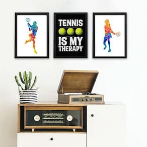 Kit 3 quadros tenistas - tênis terapia 24x18cm Moldura: madeira branca Informações do produto tire todas as suas dúvidas no descritivo abaixo: decoração para quarto, sala, cozinha, escritório, área gourmet e muito mais. Chega de paredes vazias medidas - cada peça tem 24x18cm a5 . Material do papel - papel fotográfico brilhante de altíssima resolução acabamento - todos os quadros são acompanhados de uma película de acetato para proteção da imagem. - os quadros são embalados de forma segura com plástico bolha com camada dupla de acordo com o tamanho dos quadros. - de 3 meses. Meu quadro chegou. Como posso fixá-lo Você precisa apenas de um martelo e um prego, pois os quadros já vão acompanhados de penduradores. Esta é a forma mais indicada. Caso prefira, você pode utilizar uma fita dupla face neste caso, sugerimos de alta qualidade para evitar que descole e seu quadro caia . Como posso limpar meu quadro A limpeza é feita como um móvel comum da sua casa. Apenas um pano seco ou espanador são suficientes para tal Marca: Não Informado Ean: 7899248610446