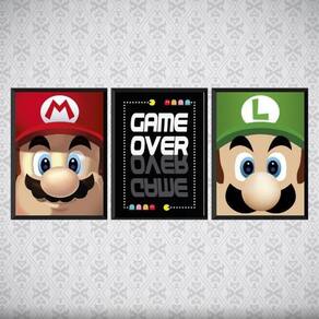 Kit 3 quadros vídeo game personagens 24x18cm - com vidro Moldura: madeira preta Informações do produto tire todas as suas dúvidas no descritivo abaixo: decoração para quarto, sala, cozinha, escritório, área gourmet e muito mais. Chega de paredes vazias medidas - cada peça tem 24x18cm a5 . Material do papel - papel fotográfico brilhante de altíssima resolução acabamento - todos os quadros são acompanhados de vidro para proteção da imagem. - moldura em madeira maciça na cor preta e pendurador . - os quadros são embalados de forma segura com plástico bolha com camada dupla de acordo com o tamanho dos quadros. - de 3 meses. Meu quadro chegou. Como posso fixá-lo Você precisa apenas de um martelo e um prego, pois os quadros já vão acompanhados de penduradores. Esta é a forma mais indicada. Como posso limpar meu quadro A limpeza é feita como um móvel comum da sua casa. Apenas um pano seco ou espanador são suficientes para tal Marca: Não Informado Ean: 7891130123690