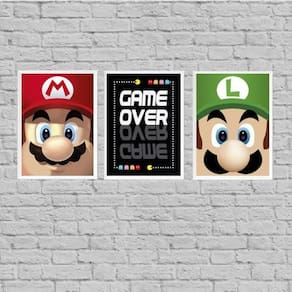 Kit 3 quadros vídeo game personagens 24x18cm Moldura: madeira branca Informações do produto tire todas as suas dúvidas no descritivo abaixo: decoração para quarto, sala, cozinha, escritório, área gourmet e muito mais. Chega de paredes vazias medidas - cada peça tem 24x18cm a5 . Material do papel - papel fotográfico brilhante de altíssima resolução acabamento - todos os quadros são acompanhados de uma película de acetato para proteção da imagem. - os quadros são embalados de forma segura com plástico bolha com camada dupla de acordo com o tamanho dos quadros. Garantia - garantia de 3 meses. Meu quadro chegou. Como posso fixá-lo Você precisa apenas de um martelo e um prego, pois os quadros já vão acompanhados de penduradores. Esta é a forma mais indicada. Caso prefira, você pode utilizar uma fita dupla face neste caso, sugerimos de alta qualidade para evitar que descole e seu quadro caia . Como posso limpar meu quadro A limpeza é feita como um móvel comum da sua casa. Apenas um pano seco ou espanador são suficientes para tal