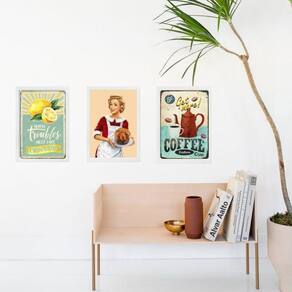 Kit 3 quadros vintage copa e cozinha - pin up 33x24cm - com vidro Moldura: madeira branca Informações do produto tire todas as suas dúvidas no descritivo abaixo: decoração para quarto, sala, cozinha, escritório, área gourmet e muito mais. Chega de paredes vazias medidas - cada peça tem 33x24cm a4 . Material do papel - papel fotográfico brilhante de altíssima resolução acabamento - todos os quadros são acompanhados de vidro para proteção da imagem. - moldura em madeira maciça na cor preta ou branca conforme produto escolhido e pendurador . - os quadros são embalados de forma segura com plástico bolha com camada dupla de acordo com o tamanho dos quadros. - de 3 meses. Meu quadro chegou. Como posso fixá-lo Você precisa apenas de um martelo e um prego, pois os quadros já vão acompanhados de penduradores. Esta é a forma mais indicada. Como posso limpar meu quadro A limpeza é feita como um móvel comum da sua casa. Apenas um pano seco ou espanador são suficientes para tal Marca: Não Informado