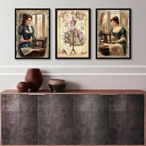 Kit 3 quadros vintage para atelier de costura 33x24cm