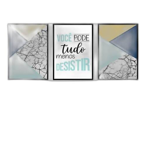 Kit 3 quadros você pode tudo - geométrico 33x24cm - com vidro Moldura: madeira branca Informações do produto tire todas as suas dúvidas no descritivo abaixo: decoração para quarto, sala, cozinha, escritório, área gourmet e muito mais. Chega de paredes vazias medidas - cada peça tem 33x24cm a4 . Material do papel - papel fotográfico brilhante de altíssima resolução acabamento - todos os quadros são acompanhados de vidro para proteção da imagem. - moldura em madeira maciça na cor preta e pendurador . - os quadros são embalados de forma segura com plástico bolha com camada dupla de acordo com o tamanho dos quadros. - de 3 meses. Meu quadro chegou. Como posso fixá-lo Você precisa apenas de um martelo e um prego, pois os quadros já vão acompanhados de penduradores. Esta é a forma mais indicada. Como posso limpar meu quadro A limpeza é feita como um móvel comum da sua casa. Apenas um pano seco ou espanador são suficientes para tal Marca: Não Informado