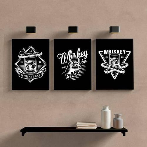 Kit 3 quadros whiskey 34x23cm - moldura branca Tamanho: a4 20 x 30 Acabamento: película de acetato Moldura: madeira branca Informações do produto Tire todas as suas dúvidas no descritivo abaixo: Decoração para quarto, sala, cozinha, escritório, área gourmet e muito mais. Chega de paredes vazias Medidas - cada peça tem 34x23cm a4 . Material do papel - papel fotográfico brilhante de altíssima resolução Acabamento - todos os quadros são acompanhados de uma película de acetato para proteção da imagem. - moldura em madeira maciça na cor branca e pendurador móvel que pode ser retirado facilmente caso deseje fixar com fita dupla face. - os quadros são embalados de forma segura com plástico bolha com camada dupla de acordo com o tamanho dos quadros. - de 3 meses Meu quadro chegou. Como posso fixá-lo Você precisa apenas de um martelo e um prego, pois os quadros já vão acompanhados de penduradores. Esta é a forma mais indicada. Caso prefira, você pode utilizar uma fita dupla face neste caso, sugerimos de alta qualidade para evitar que descole e seu quadro caia . Como posso limpar meu quadro A limpeza é feita como um móvel comum da sua casa. Apenas um pano seco ou espanador são suficientes para tal Marca: Não Informado