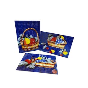 O Kit inclui 3 quebra-cabeças com 60 peças cada, com imagens decorativas no estilo de toalha de mesa. Ideal para montagem e posterior uso como item decorativo.