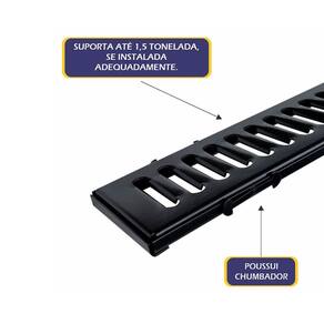 03 Ralo Grelha Com Caixilho em Aço Galvanizado Preto 10x100cm.