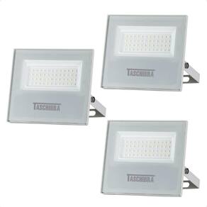 Kit 3 Refletores Taschibra Led TR Slim 50W Verde Branco Bivolt
