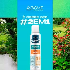A gente sabe que se cuidar exige bastante dedicação, e os produtos 2 em 1 são uma mão na roda quando o assunto é cuidado e praticidade. Se a aplicação em spray já é prática, com Above Protect Repelente + Protetor Solar essa facilidade vai reinar no seu dia a dia. São 10 horas de proteção contra insetos, pois, esse produto é enriquecido com aloe vera, vitamina E e DEET composto responsável por inibir a ação dos insetos na nossa pele . Tudo isso se alia a uma proteção solar de fator 30 com secagem rápida, evitando que os raios UVA e UVB prejudiquem a pele também.