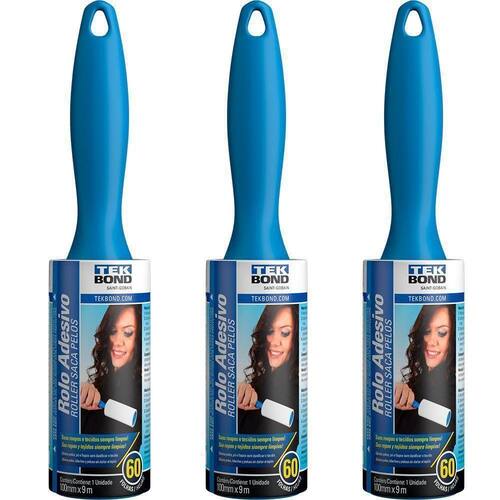 Kit 3 Rolo Adesivo Tira Pelos 100Mm 60 Folhas Tekbond