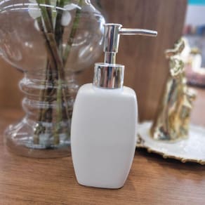 Características do Produto: -Design Elegante: Feitas em porcelana branca de alta qualidade, estas saboneteiras apresentam um design simples e sofisticado que se adapta perfeitamente a qualquer decoração de banheiro. -Bico Dosador Cromado: Equipadas com um bico dosador cromado, as saboneteiras permitem uma dosagem precisa do sabonete líquido, evitando desperdícios e mantendo a bancada do banheiro sempre limpa e organizada. -Capacidade Ideal: Cada saboneteira tem capacidade para até 250ml de sabonete líquido, proporcionando um uso prolongado sem a necessidade de recargas frequentes. -Fácil de Limpar: A porcelana branca é fácil de limpar e mantém sua aparência impecável com o mínimo de esforço, garantindo uma higiene impecável em seu banheiro. -Kit com 3 Unidades: Este kit inclui 3 saboneteiras, permitindo que você distribua a praticidade e o charme em diferentes pontos do seu banheiro ou até mesmo em outros cômodos da casa. -Perfeito para Presentear: Surpreenda seus entes queridos com este elegante kit de saboneteiras. É o presente ideal para inaugurações de casas, aniversários e outras ocasiões especiais.