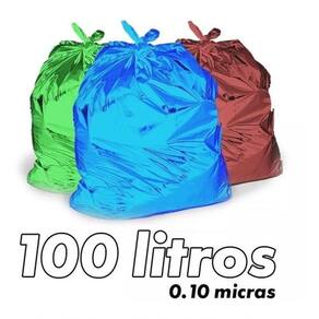 Sacos Coloridos Quantidade: 300 unidades Tamanho: 100 L Micragem: 0,10 Cores disponíveis: Azul, cinza, vermelho, verde, amarelo, laranja e marrom. Dimensões: 75x90 cm Peso por 100 un: 3,9 kg