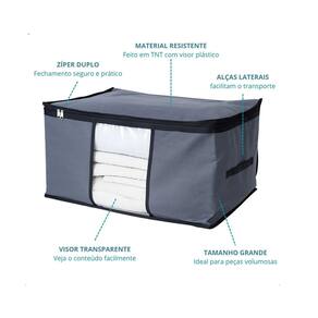 - Ideal para peças volumosas: edredons, cobertas King, Cobertor, casacos e muito mais. - Design compacto e fácil de armazenar. - Visor frontal transparente para fácil visualização do conteúdo. - Material resistente: TNT com plástico no visor. - Fechamento seguro com zíper duplo.