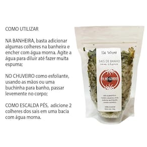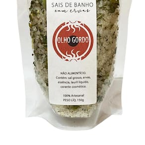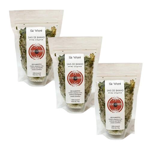 Kit 3 Sal de Banho contra OLHO GORDO com ervas Ilê Wurá Sais de banho OLHO GORDO - Contra Olho Gordo e Inveja Para chuveiro ou banheira. Produto artesanal com finalidade ritualística e fitoenergética. Não cosmético, não alimentício. Contém sal grosso, ervas desidratadas e essência. Não contém corante. Esse sache contém 150 gramas. Como utilizar ------------- - Na banheira, para relaxar e ter uma experiência incrível no seu banho, basta adicionar algumas colheres na banheira e encher com água morna; - Como esfoliante, usando as mãos ou uma buchinha para banho, passar levemente no corpo; - Como Escalda Pés, adicionando 2 colheres dos sais em uma bacia com água morna. Marca: Não Informado
