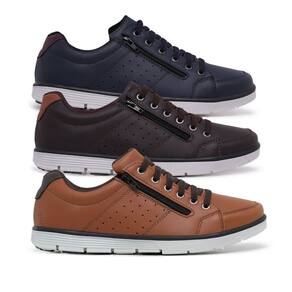 Kit 3 Sapatênis Casual Masculino Elástico e Zíper Lateral - 37 - Marrom Chocolate