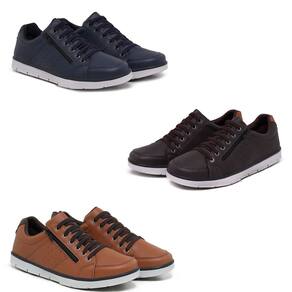 Kit 3 Sapatênis Casual Masculino Elástico e Zíper Lateral - 38 - Marrom Chocolate