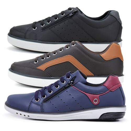 Kit 3 Sapatênis Casual Masculino Fechamento Elástico e Zíper - 42 - Marrom Cacau