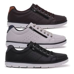 Kit 3 Sapatênis Casual Masculino Zíper Lateral e Elástico - 37 - Marrom
