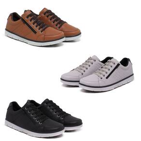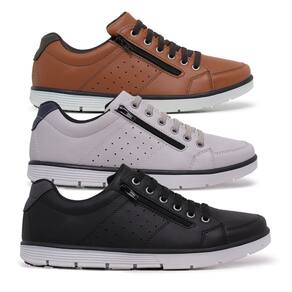 Kit 3 Sapatênis Casual Masculino Zíper Lateral e Elástico - 37 - Mostarda