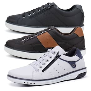 Kit 3 Sapatênis Casual Masculinos Fechamento Elástico Zíper - 39 - Branco