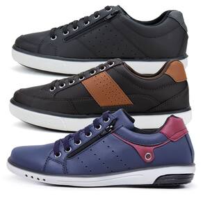 Kit 3 Sapatênis Casual Masculinos Fechamento Elástico Zíper - 41 - Marrom Cacau