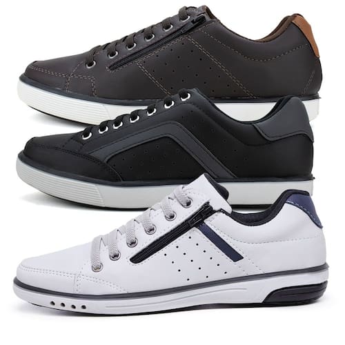 Kit 3 Sapatênis Masculino Com Fechamento Elástico e Zíper - 37 - Marrom