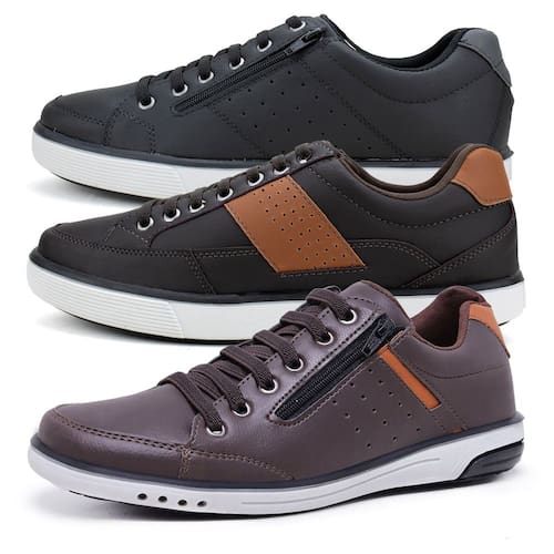 Kit 3 Sapatênis Masculinos Fechamento Em Elástico e Zíper - 43 - Marrom Chocolate