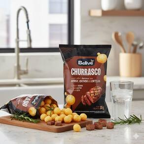 Diferenciais do Produto Feito com arroz, quinoa e lentilha Sabor intenso de churrasco Assado, leve e crocante Sem glúten e sem lactose Embalagem prática de 35g