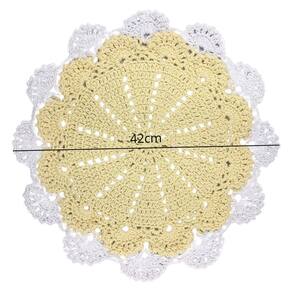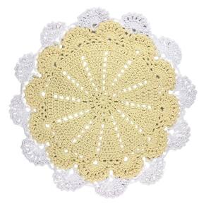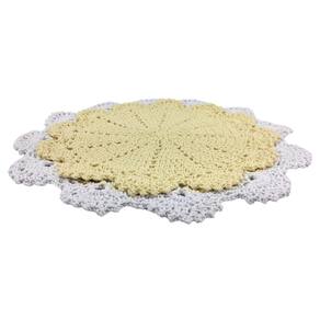 Kit 3 Sousplat de Mesa Modelo Floral 42cm Barbante Barbantextil Amarelo com Branco N6 Redondo Feito à Mão O sousplat de crochê é um item decorativo para a mesa de jantar. Além do toque especial na decoração, ele ajuda a proteger a mesa de manchas e arranhões. É feito de crochê à mão. Este anúncio é um kit com três unidades.