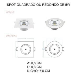 Spot LED de embutir Redondo, 5W, 3000k, Luz Quente, ideal para iluminação residencial ou comercial para destaque de objetos ou texturas em ambientes internos, longa durabilidade, led 5w substitui 35w incandescente, permite o uso com sensor de presença. Somente para uso interno ou abrigado.