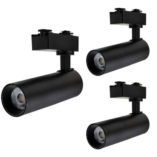 Kit 3 Spot Longo Led MR16 para Trilho Eletrificado Preto 3000K Quente