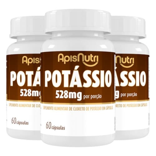 Kit 3 Potássio Apisnutri 528mg 60 Cápsulas Sobre o produto O potássio é um mineral essencial para diversas funções do organismo. Ele está presente naturalmente em muitos alimentos e também pode ser consumido na forma de suplemento. O potássio participa de processos importantes no corpo, como a manutenção do equilíbrio de fluidos, a contração muscular e a condução de impulsos nervosos. Além disso, ele é um dos principais eletrólitos do organismo, ajudando a manter a hidratação e o funcionamento adequado das células. Modo de usar Ingerir 2 cápsulas ao dia. Recomendação de uso: Pessoas com 19 dezenove anos ou acima. este produto não é um . não exceder a recomendação diária de consumo indicada na embalagem. mantenha fora do alcance de crianças. gestantes e lactantes, somente devem consumir este produto sob orientação de nutricionista ou médico. Manter a embalagem bem fechada e em local seco e fresco. Não expor a luz solar. Consumir em até 60 dias após aberto. Isento de registro no M.S. Conforme RDC 240/2018. Apresentação Classificação: Suplemento alimentar de Cloreto de Potássio em cápsulas Quantidade de cápsulas: 60 cápsulas de 650mg Peso Líquido: 39g Marca: Não Informado