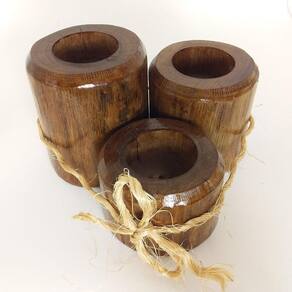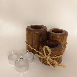 Características do Produto: - Kit com 3 suportes para velas - Material: Madeira - Acabamento em verniz brilhante - Tamanhos: 9 cm Aproxim. de altura e 7 cm Aproxim. de diâmetro; 7 cm Aproxim. de altura e 7 cm Aproxim. de diâmetro; 5 cm Aproxim. de altura e 7 cm Aproxim. de diâmetro - Acompanha 3 velas brancas