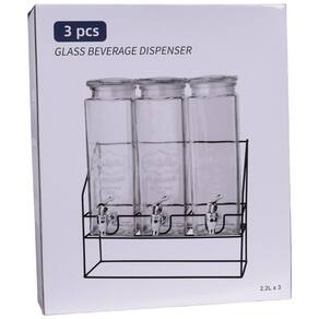 Kit com 3 unidades, ideal para servir diferentes bebidas ao mesmo tempoCapacidade de 2,2 litros cadaTorneiras práticas para servir com facilidadeSuportes inclusos que facilitam o usoTamanho compacto, perfeito para mesas menoresIndicado para água, sucos, chás, drinks, festas, reuniões ou uso diário.