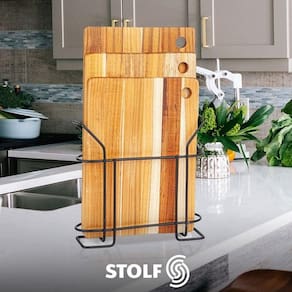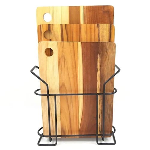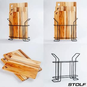 Kit 3 Tábuas De Corte Madeira Teca Com Suporte Aramado De Metal Preto Stolf. #Tábuas Carne Legumes Verduras #Linha Cozinha Gourmet Stolf #Suas Tábuas Sempre A Mão Garantia: 90 Dias / Peso: 1,02Kg / Cores: Madeira e Preto / Ref: 971276 Dimensões: 21cm (C) x 6cm (L) x 34cm (A) Tábua Grande: 18cm (C) x 1cm (L) x 33cm (A) Tábua Média: 18cm (C) x 1cm (L) x 29cm (A) Tábua Pequena: 18cm (C) x 1cm (L) x 25cm (A) Diâmetro Dos Orifícios: 2cm Limpeza e Cuidados: - Lave com pano levemente umedecido com água e sabão neutro, seguido de pano seco; - Não utilizar produtos químicos ou abrasivos na limpeza. Conteúdo: - 03 Tábuas de corte com orifícios para que possam ser penduradas; - 01 Suporte aramado preto. Material: - Metal Envernizado; - Madeira Teca. Com esse kit de 3 tábuas de madeira tudo vai ficar mais simples, rápido e organizado, pois ele acompanha um lindo suporte aramado de metal na cor preto, que traz um toque elegante, moderno e sofisticado para os utensílios de sua casa, além de manter as tábuas organizadas e de fácil acesso, não deixando aquela bagunça na sua cozinha ou área gourmet. Essencial para cortar, servir e temperar alimentos com rapidez e praticidade, este conjunto de tábuas com suporte facilitarão muito a vida de quem gosta de servir bem os seus familiares, convidados e amigos.