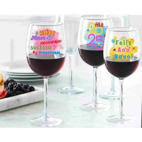 Especificações: Altura: 22 cm Diâmetro: 7 cm Capacidade: 465ml Material: Vidro Contém: 3 Taças De Vinho Personalizadas Ano Novo Marca: Não Informado