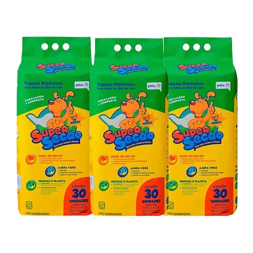 Kit 3 Tapete Higiênico Cães Super Secão Petix C/30 Unidades
