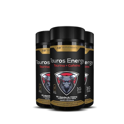 Tauros energy taurina + caffeína 60 cápsulas 1700mg hf suplements premium Tauros energy é para atletas do dia a dia que desejam melhorar seu desempenho e resistência durante os treinos de curta e média duração, ou apenas ter maior disposição durante o dia, com aumento do estado de alerta e melhora na concentração, devido a sua fórmula com 200mg de caff3ína, e também com a taurina, que equilibra o sistema nerv0so central, além de possuir propriedades anti0xidantes e ant1-inflamatór1as. Gestão de uso: 2 cápsulas ao dia.Através deste anúncio, você está adquirindo 3 três potes de tauros energy 1700mg 60caps hf suplements.
